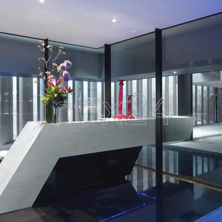 Η INOX24 φέρνει την τεχνολογία αιχμής στις επιφάνειες εργασίας, στις βιτρίνες και στους πάγκους σας, συνδυάζοντας το ανοξείδωτο ατσάλι με το Corian για ένα αποτέλεσμα υγιεινό, κομψό και μοναδικό.