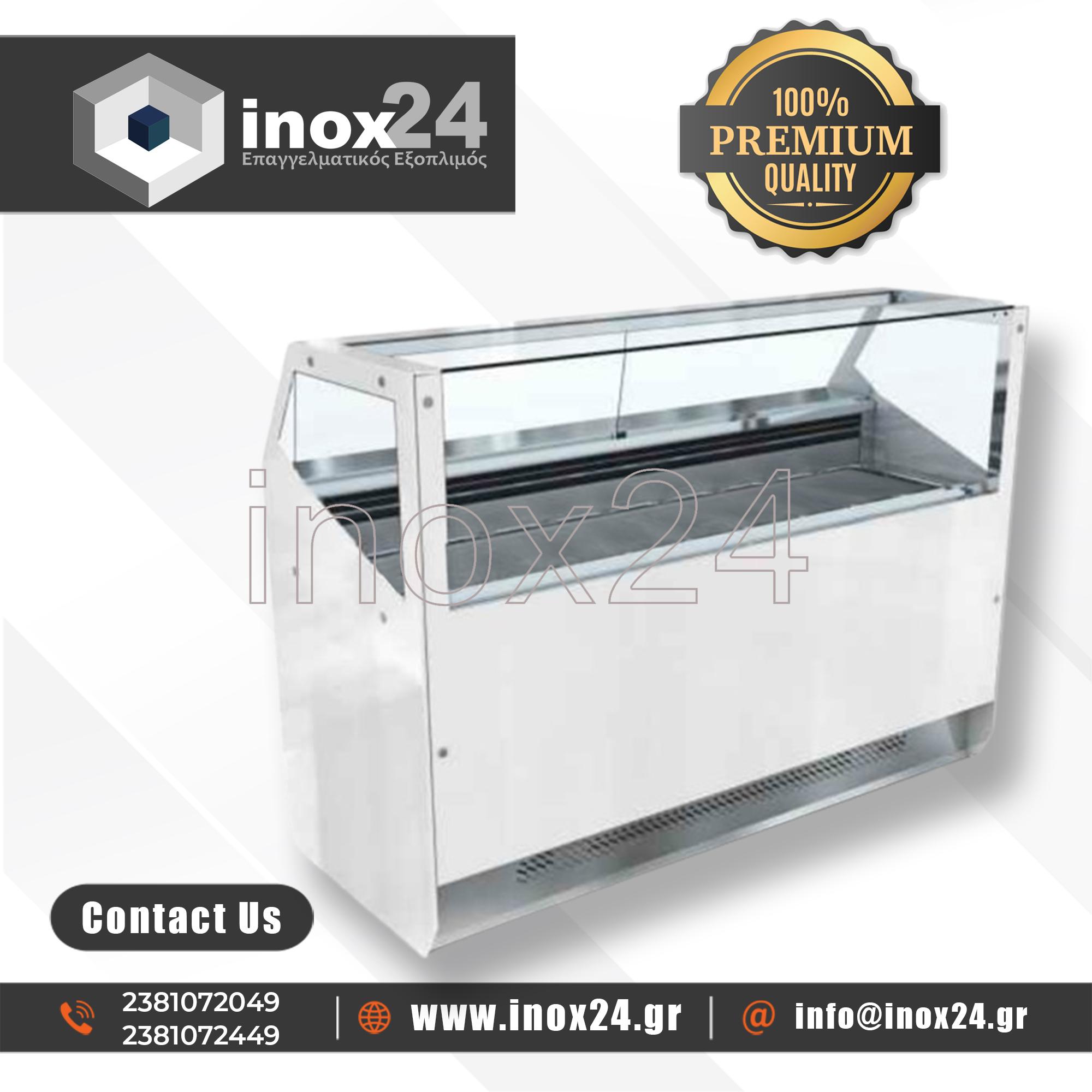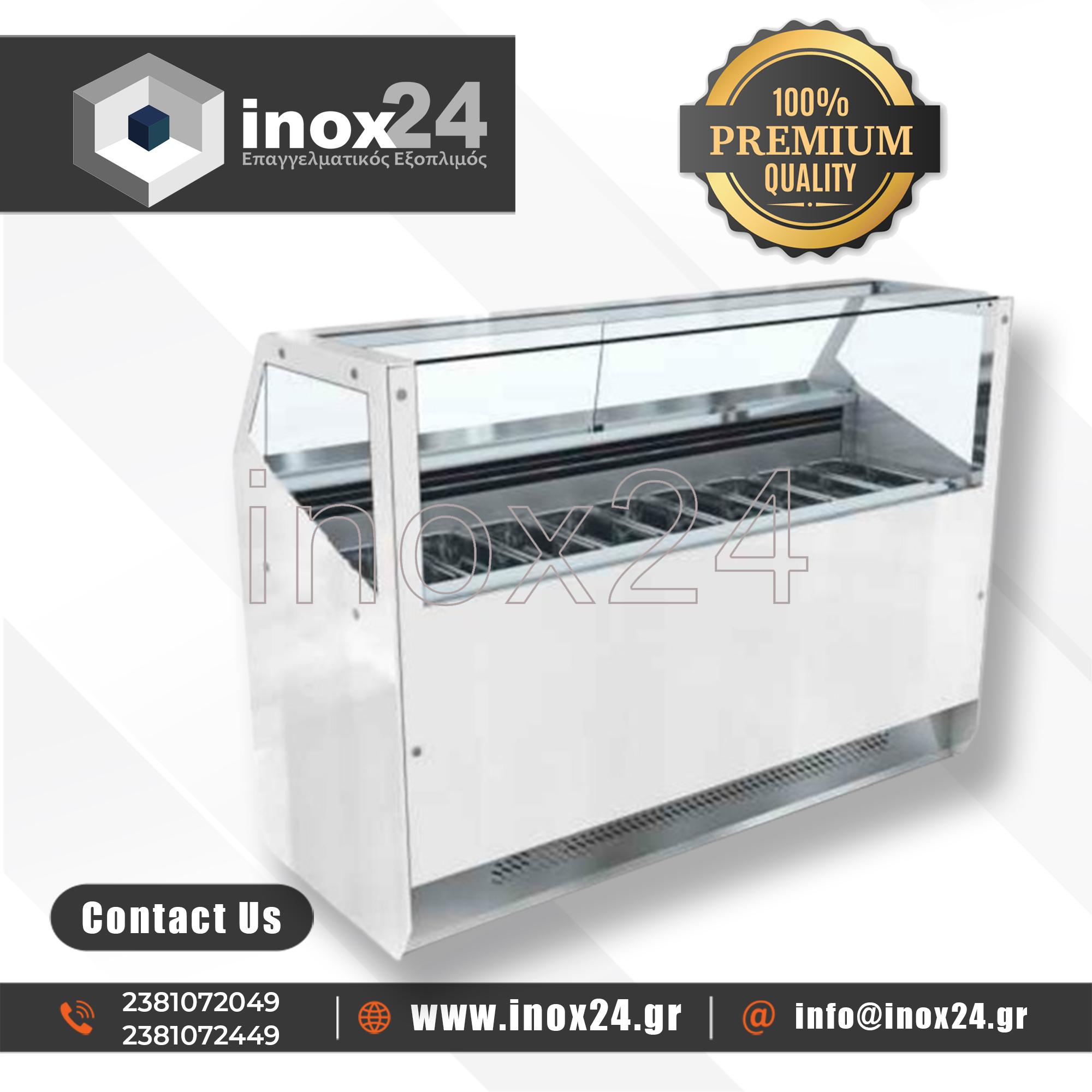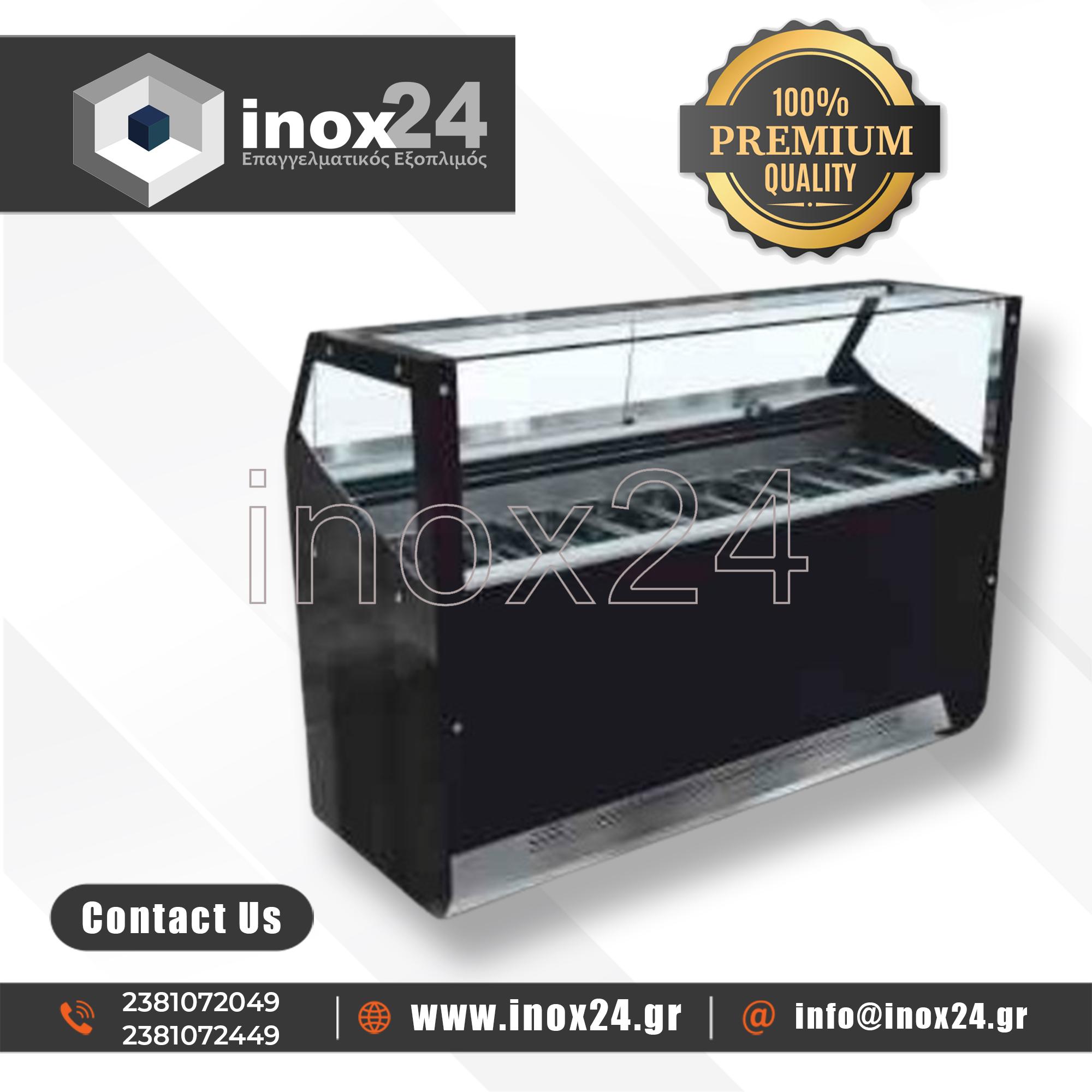 Η βιτρίνα αυτή σχεδιάστηκε για την εξυπηρέτηση μικρών χώρων που εκθέτουν παγωτά. Εξαιρετική ψύξη και συντήρηση για τα παγωτά. Επένδυση σε χρώματα και υλικά της επιλογής σας.
