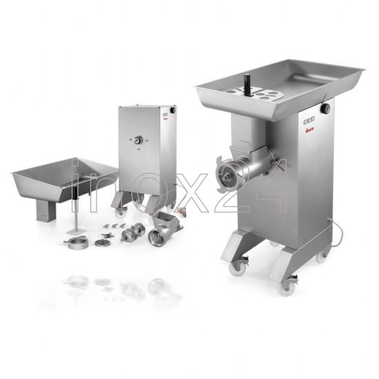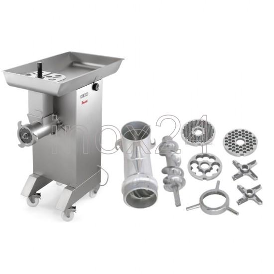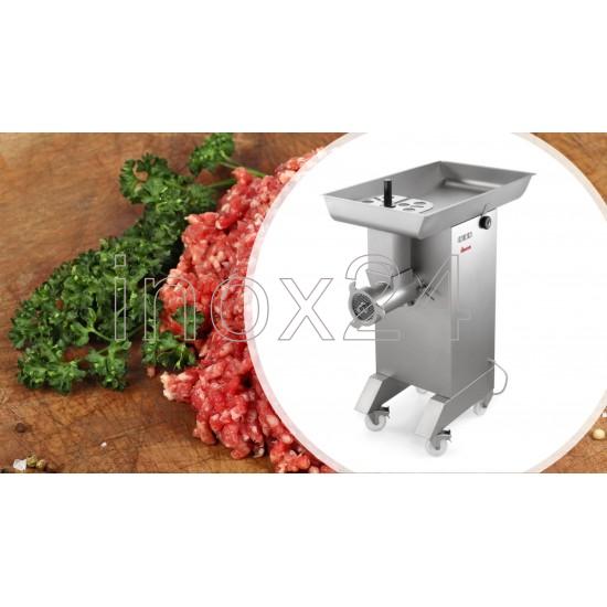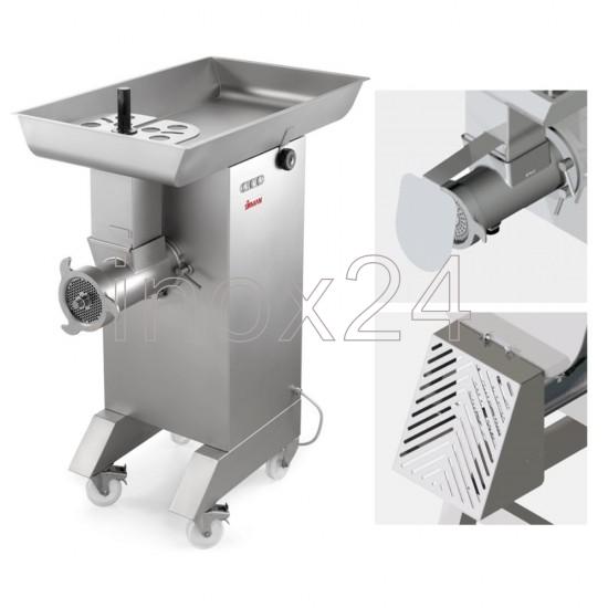 Διαθέτει ανοξείδωτη μπούκα – σωλήνα – στεφάνι, μεγάλο ανοξείδωτο ταψί τροφοδοσίας κρέατος (563 × 900 × 120 mm), ενώ ο ισχυρός μειωτήρας λαδιού εξασφαλίζει ομαλή, αθόρυβη και αποδοτική λειτουργία ακόμη και σε υψηλές απαιτήσεις παραγωγής.