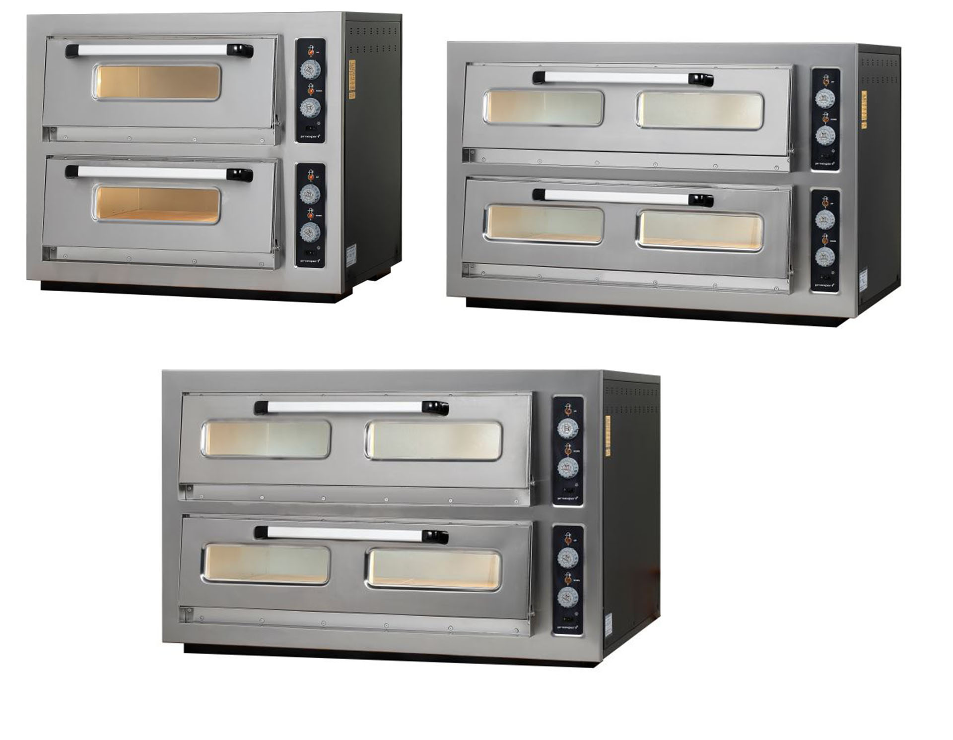 Φούρνοι πίτσας χωρητικότητας 4+4×30 cm, 6+6×30 cm και 9+9×30 cm από ανοξείδωτο ατσάλι.