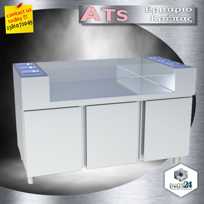 Ερμάριο κρέπας με 3 πόρτες INOX ATS με αποθηκευτικό χώρο και βοηθητικά λεκανάκια