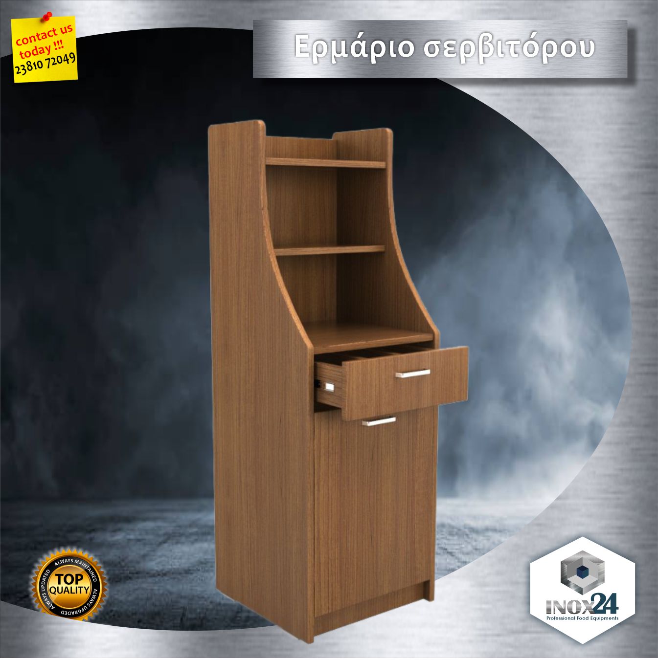 Σταθμός σερβιτόρου slim line για αποθήκευση υλικών και διευκόλυνση όλων των απαραίτητων εργασιών.