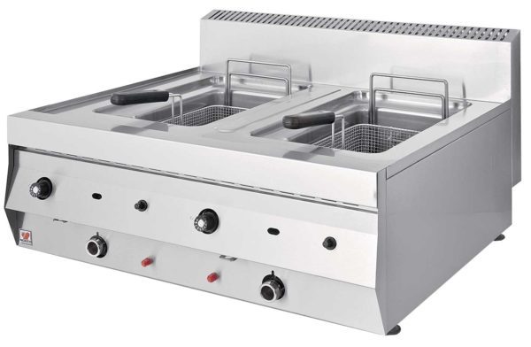 Επιτραπέζια φριτέζα υγραερίου με κρύα ζώνη. Διαθέτει Θερμοστάτη για τον σωστό έλεγχο θερμοκρασίας του λαδιού-Αποσπώμενη Σήτα για την περισυλλογή των υπολειμμάτων. Βάνα με Μεγάλη διάμετρο για την έξοδο λαδιού και τον εύκολο καθαρισμό, χάρη στην τεχνολογία κρύας ζώνης. Διαθέτη Θερμοστάτη ασφαλείας και θερμοκόπια για την ασφάλεια του χρήστη. Μπορεί να τοποθετηθεί σε βάση με καμπίνα μοντέλο ΒΑΣΗ700