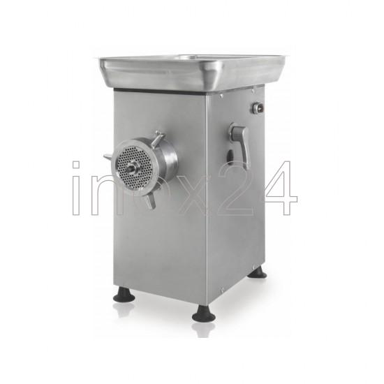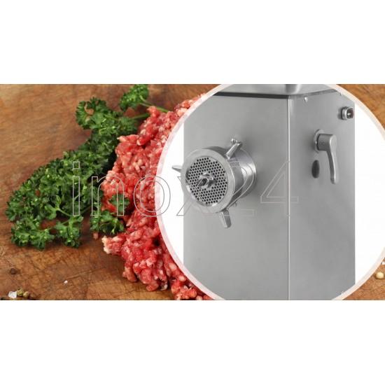 Διαθέτει σύστημα όπισθεν λειτουργίας για άμεση απεμπλοκή του κρέατος, μεγάλο ανοξείδωτο ταψί τροφοδοσίας και ενισχυμένη μπουκάλα – σαλικάγκο – στεφάνι από ανοξείδωτο ατσάλι για ασφαλή και αδιάκοπη λειτουργία. Ο ενισχυμένος αθόρυβος κινητήρας 1200 στροφών και η βαριά κατασκευή της συσκευής προσφέρουν σταθερότητα πάνω σε λαστιχένιες βάσεις, ακόμη και στις πιο απαιτητικές χρήσεις.