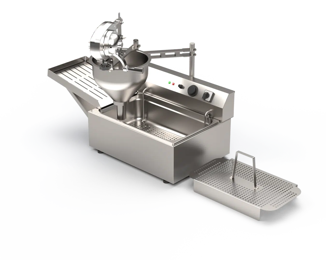 Η φριτέζα του σετ διαθέτει εργονομικό σχεδιασμό, σταθερή θερμοκρασία λειτουργίας και αξιόπιστα ευρωπαϊκά ηλεκτρολογικά εξαρτήματα, εξασφαλίζοντας συνεχή και ασφαλή λειτουργία ακόμη και σε απαιτητικές συνθήκες.