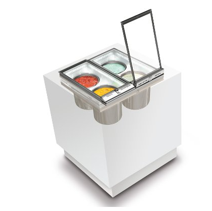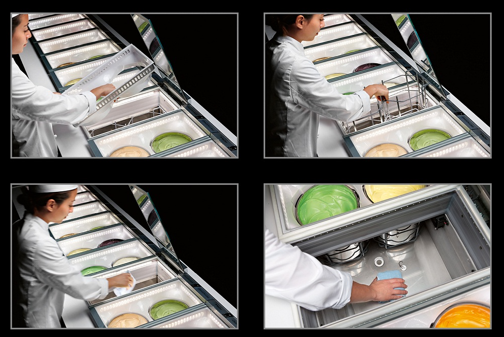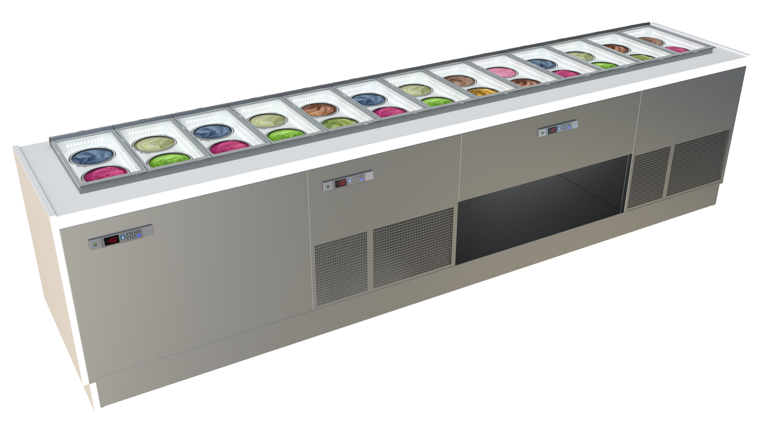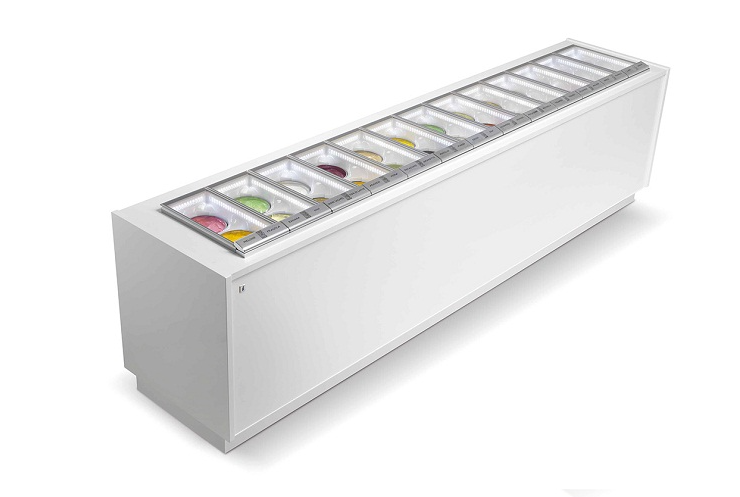 - Σε αντίθεση με τα κανονικά pozzetti, το παγωτό φαίνεται, χάρη στις πόρτες με διπλά και θερμαινόμενο πυρολυτικό τζάμια που χρησιμεύουν ως προστατευτικό φράγμα μεταξύ πελάτη και παγωτού όταν είναι ανοιχτό.