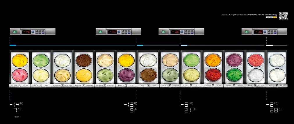 Η τεχνολογία Panorama αντιπροσωπεύει μια ολοκαίνουργια σύνθεση δύο θεμελιωδών χαρακτηριστικών της χειροποίητης παρασκευής παγωτού που ήταν πάντα το αντίθετο μεταξύ τους: τέλεια διατήρηση του παγωτού στους πάγκους pozzetti και ορατότητα των γεύσεων στις προθήκες, προσφέροντας έναν νέο τρόπο παρουσιάζοντας και σερβίροντας χειροποίητο παγωτό.