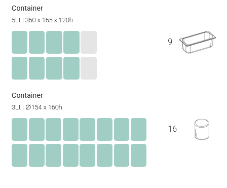 Χωρητικότητα:  9x (5Lt | 360 x 165 x 120h)  ή 16x (3Lt | ∅154 x 160h)