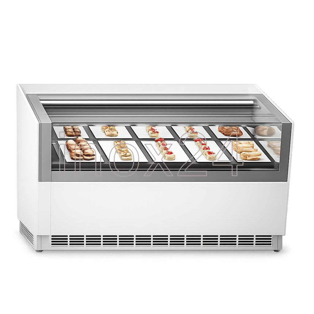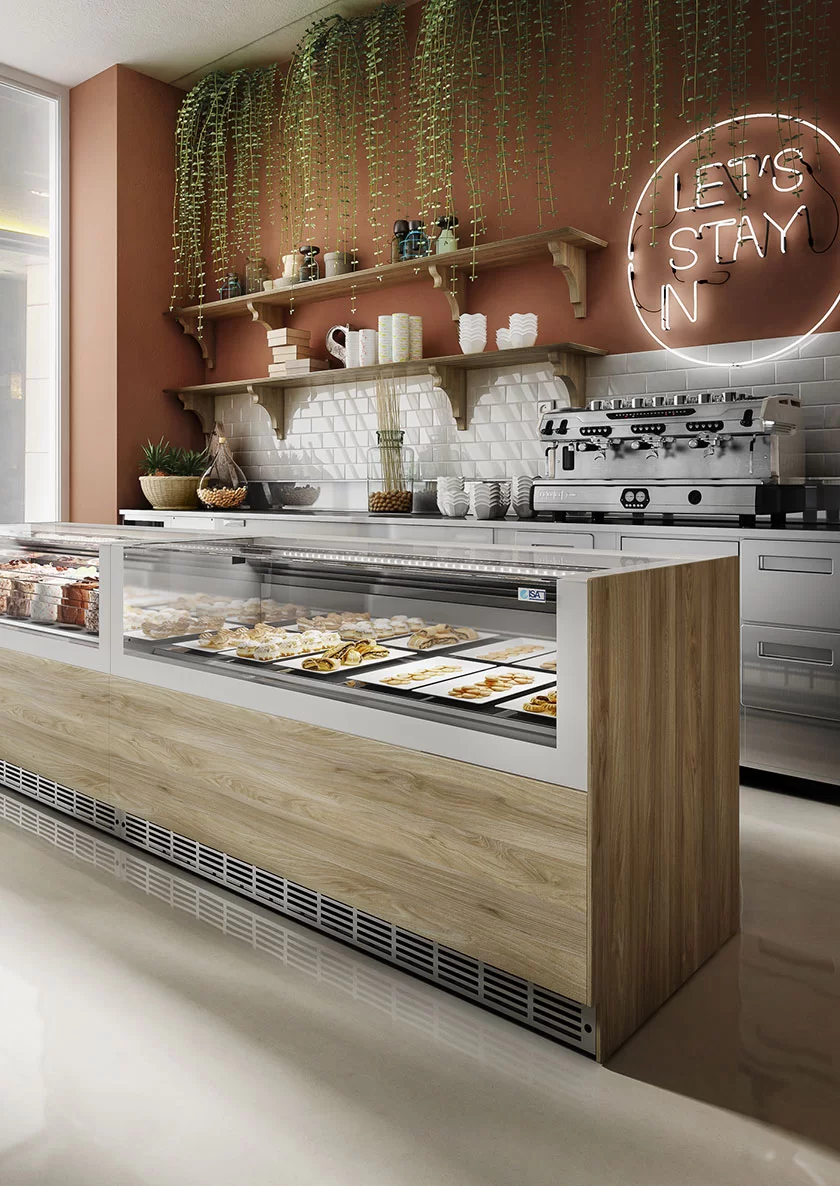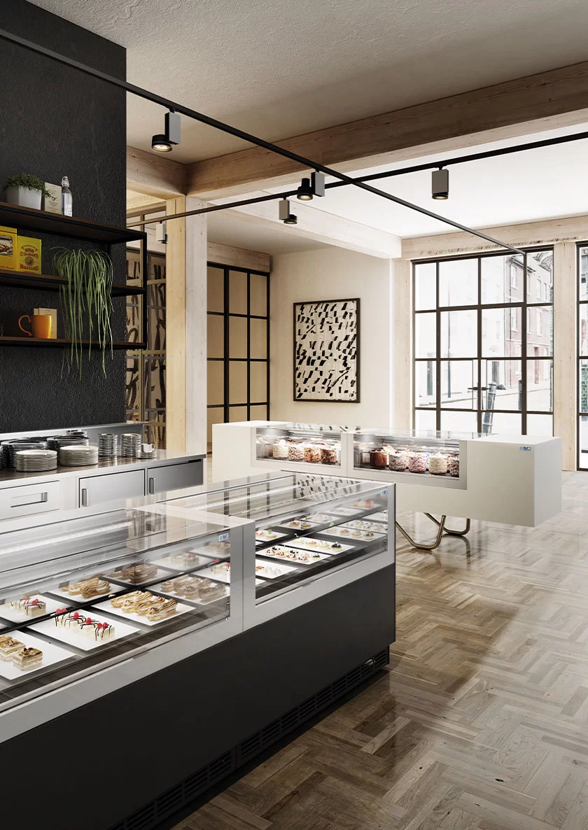 Η βιτρίνα λειτουργεί σε θετικές θερμοκρασίες, προσφέροντας ήπια και σταθερή ψύξη που προστατεύει τη δομή, τη γεύση και την εμφάνιση των προϊόντων.
