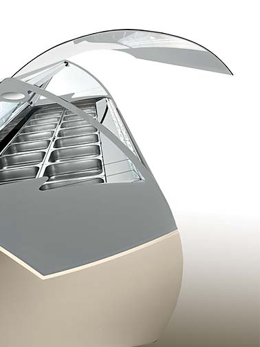 Θα μπορούσατε να έχετε τους πιο ενδιαφέροντες συνδυασμούς γεύσεων και το καλύτερο παγωτό στον κόσμο, αλλά είναι εξίσου σημαντικό να παρουσιάσετε το παγωτό με έναν ελκυστικό τρόπο. Η βιτρίνα σας σίγουρα θα προσελκύσει πολλή προσοχή και θα πρέπει επομένως να ενσωματωθεί καλά στον χώρο σας.