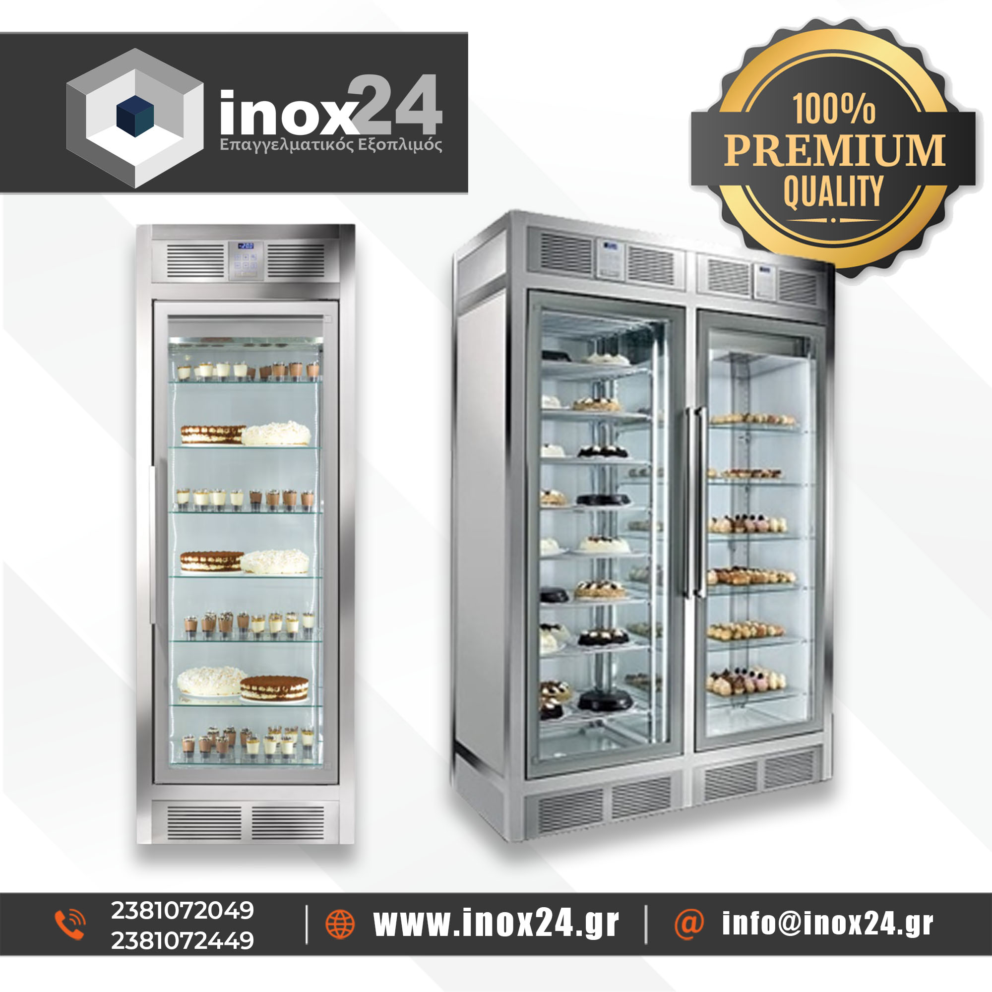 Βιτρίνες ζαχαροπλαστείου συντήρησης – κατάψυξης βεβιασμένης ψύξης.